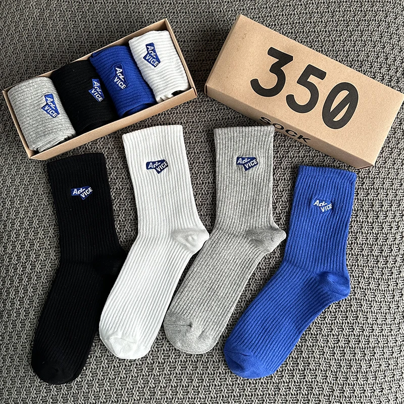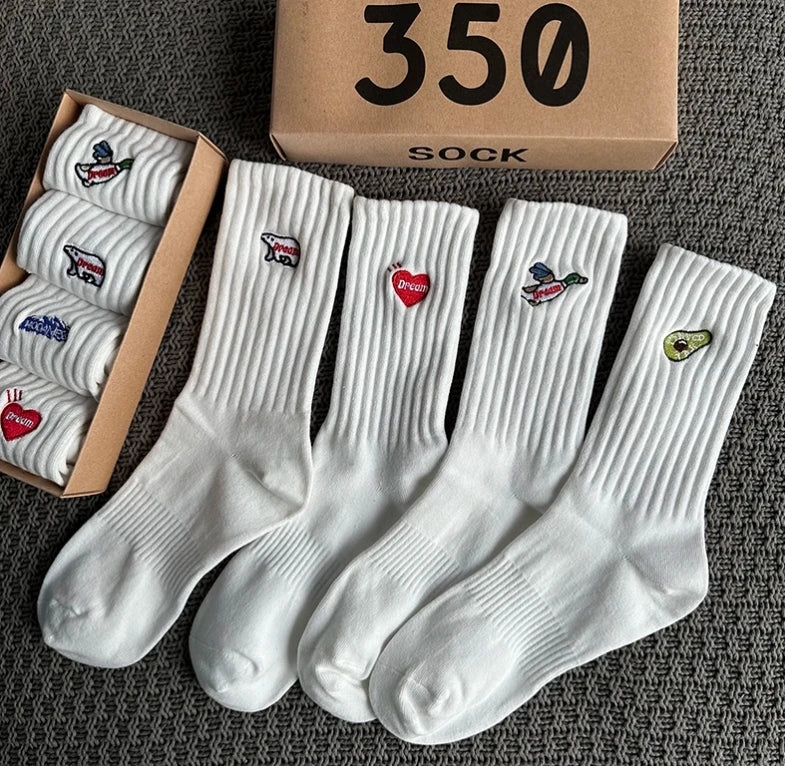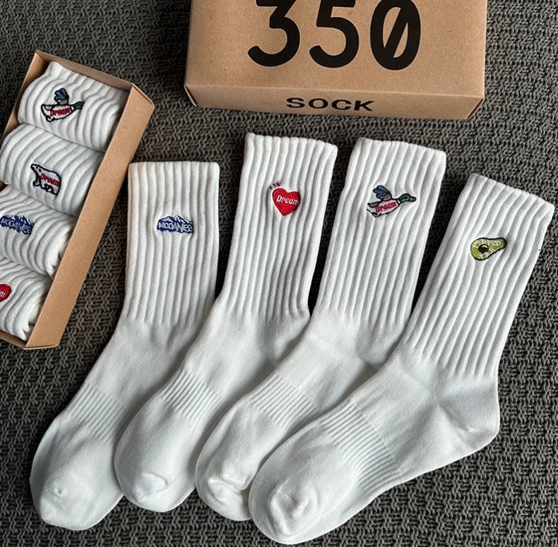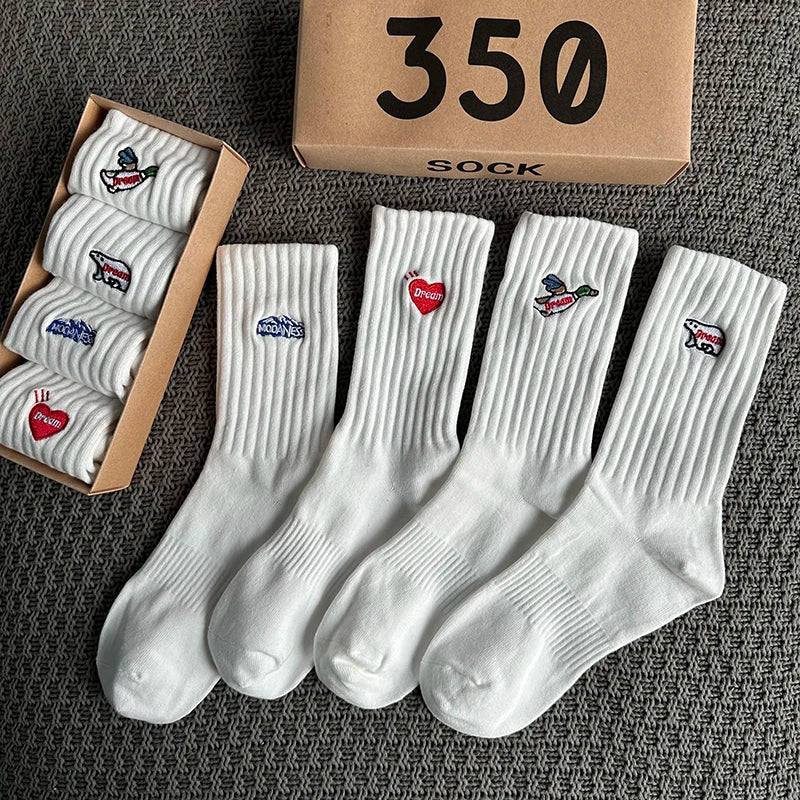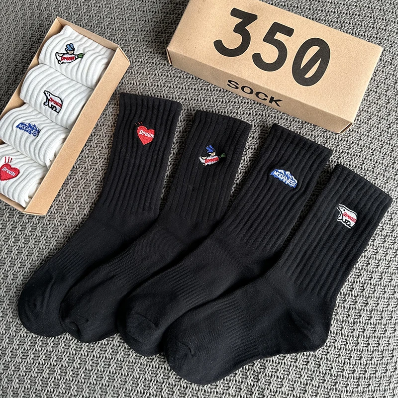 4 Pairs/Box Women's Socks Gift Box Spring Summer Fashion Embroidery Free Shipping Items Funny Gifts Black Middle Tube Socks